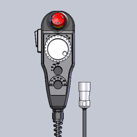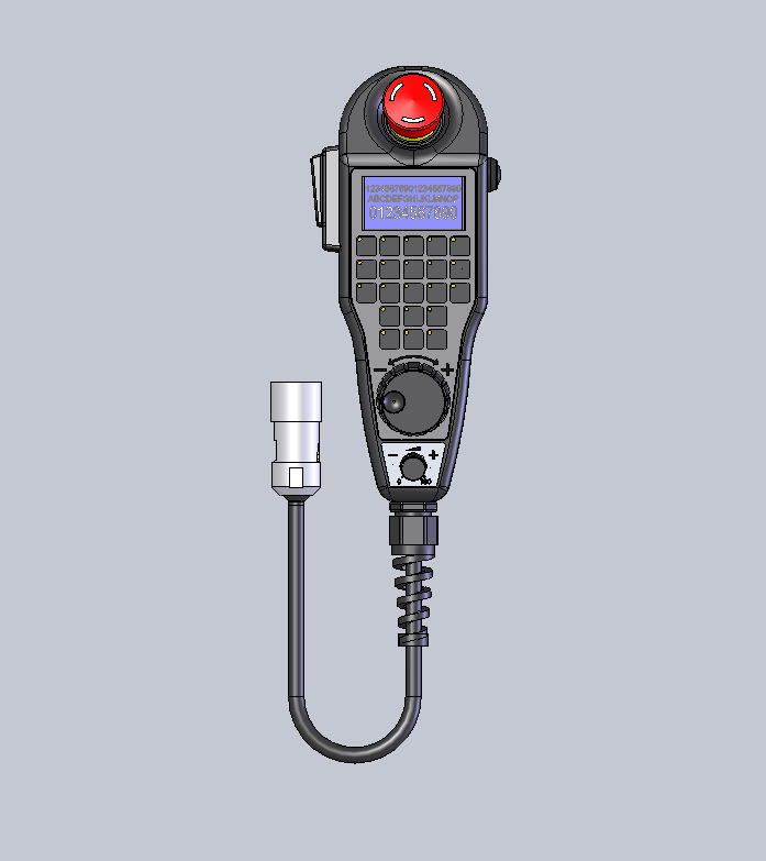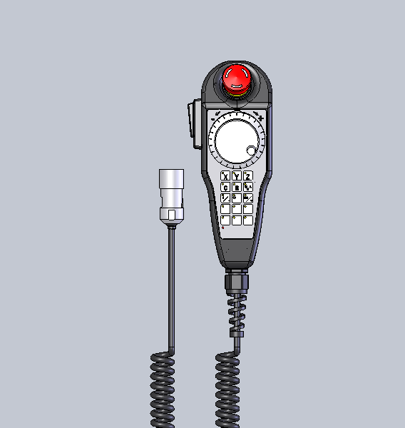Handrad, 15 Kurzhubtasten mit LED's, Zustimmschalter 2 kanalig, 3-stufig, Not-Aus 2 kanalig, Spiralkabel 18x0,25 mm² geschirmt, Bus Schnittstelle, Produktgewicht 1.230g, Abmessungen ((L x B x H) 223mm x 91mm x 92mm